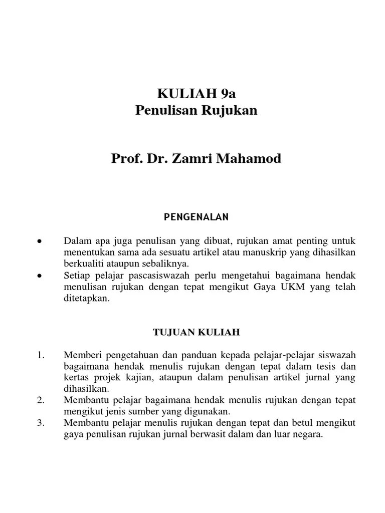 Cara merujuk dan menulis daftar rujukan pada penulisan karya ilmiah. Daftar pustaka berisi rujukan atau sumber penulis dalam membuat tulisan ilmiah.